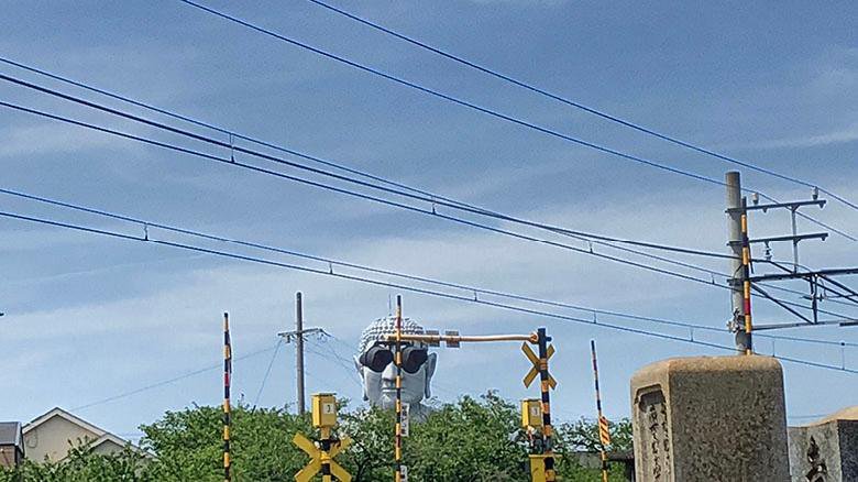 踏み切りの信号機と重なってこんな風に見えるのです。