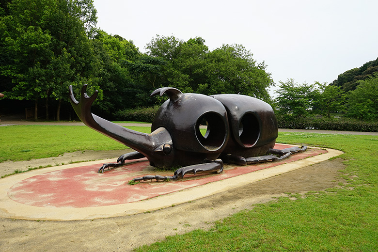 芝生広場にはカブトムシやクワガタの遊具があります。(ちょっとリアルです)