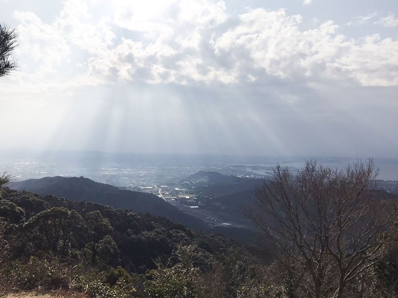 少しづつ山道が開けてきて、登りきるとこの景色!渥美半島までよく見えます。