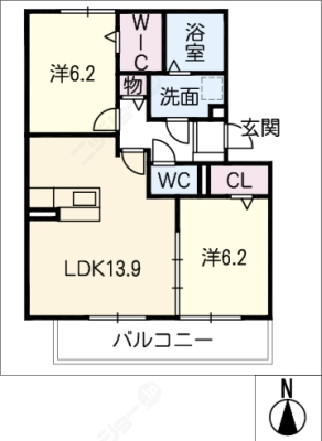 敷 金0.5ヶ月 / 礼 金1.5ヶ月間取り 2LDK / 70.44㎡入居日 2026年3月中旬