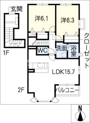 2階61,500円 / 共益費等 2,300円