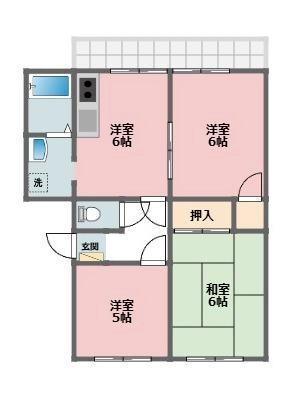敷 金1.00ヶ月 / 礼 金1.50ヶ月間取り 3DK / 53.76入居日 2026年2月28日頃