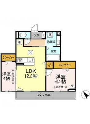 保証金2ヶ月 / 償 却10割間取り 2DK / 45.00入居日 即 可