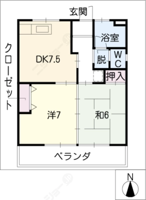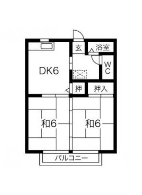 保証金104,000 / 償 却5割間取り 2DK / 44.70入居日 即 可