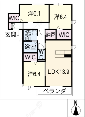 敷 金1.00ヶ月 / 礼 金2.00ヶ月間取り 3LDK / 90.74㎡入居日 即 可