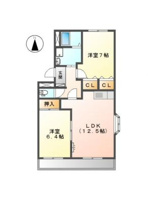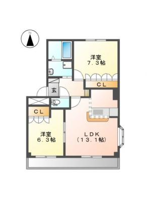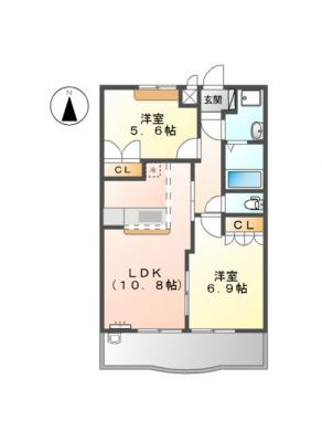 敷 金1.00ヶ月 / 礼 金-----間取り 2LDK / 57.33㎡入居日 即 可