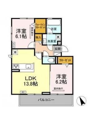 敷 金1.00ヶ月 / 礼 金2.00ヶ月間取り 2LDK / 60.88入居日 2026年4月15日頃