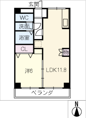 敷 金1ヶ月 / 敷 引1ヶ月間取り 1K / 18.01㎡入居日 即 可
