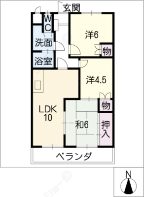 敷 金2.00ヶ月 / 礼 金1.00ヶ月間取り 3LDK / 66.45入居日 相 談