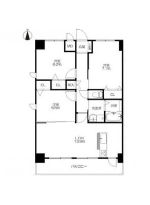 敷 金1.00ヶ月 / 礼 金1.00ヶ月間取り 3LDK / 71.03㎡入居日 相 談