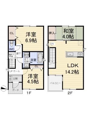 敷 金1ヶ月 / 礼 金1ヶ月間取り 2LDK / 48.48㎡入居日 即 可