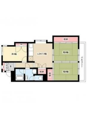 敷 金2.00ヶ月 / 償 却1.00ヶ月間取り 3LDK / 59.15㎡入居日 即 可