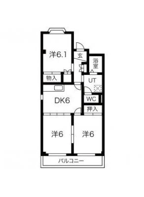 保証金2.00ヶ月 / 償 却10割間取り 3DK / 54.90入居日 即 可