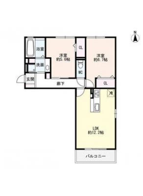 保証金----- / 礼 金-----間取り 2LDK / 57.96㎡入居日 即 可