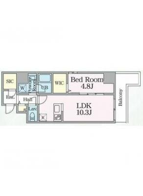 敷 金1.00ヶ月 / 償 却1.00ヶ月間取り 1LDK / 52.42㎡入居日 即 可