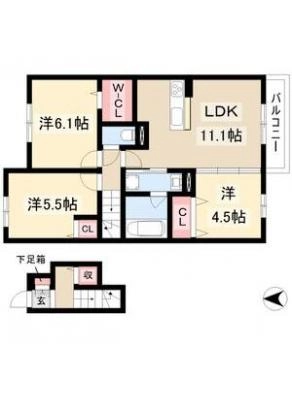 敷 金5万 / 礼 金10万間取り 3LDK / 66.55㎡入居日 即 可