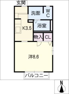 保証金----- / 礼 金2.00ヶ月間取り 1K / 35.65㎡入居日 相 談