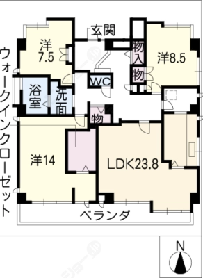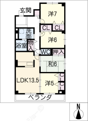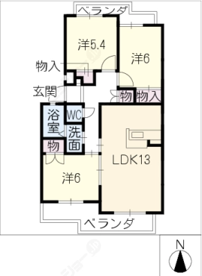 保証金1ヶ月 / 礼 金1ヶ月間取り 3LDK / 77.20㎡入居日 即 可