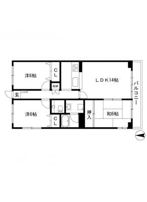 敷 金3ヶ月 / 礼 金2.5ヶ月間取り 3LDK / 82.41㎡入居日 即 可