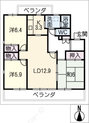 保証金1ヶ月 / 償 却10割間取り 3LDK / 61.20㎡入居日 即 可