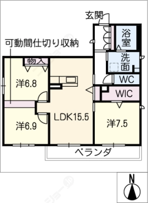 敷 金1ヶ月 / 礼 金1ヶ月間取り 3LDK / 79.57㎡入居日 2026年3月中旬