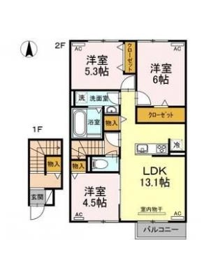 1階5.3万円 / 共益費等 3,000円