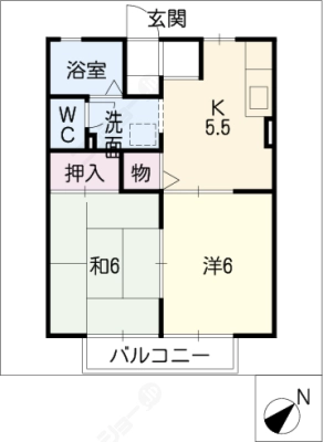 敷 金0.5ヶ月 / 一時金9万間取り 2K / 35.30入居日 即 可