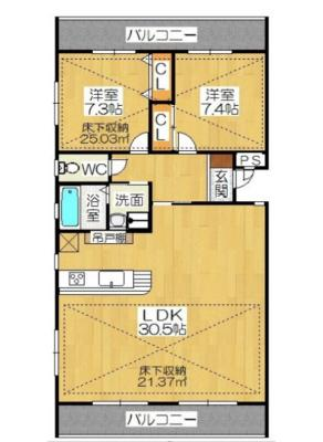 敷 金2.00ヶ月 / 礼 金1.00ヶ月間取り 2LDK / 91.47入居日 即 可