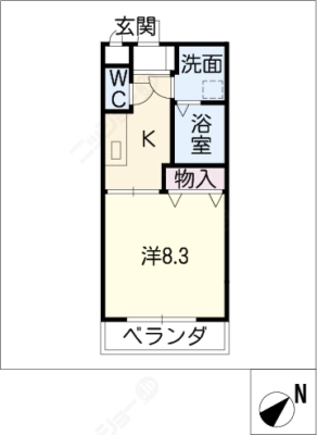 敷 金1ヶ月 / 償 却10割間取り 1K / 26.08㎡入居日