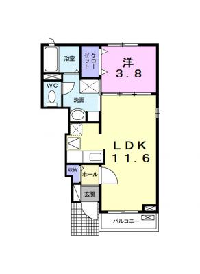 敷 金1ヶ月 / 償 却10割間取り 1LDK / 39.34入居日 即 可