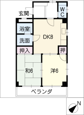 敷 金1ヶ月 / 敷 引1ヶ月間取り 2K / 33.88入居日 即 可