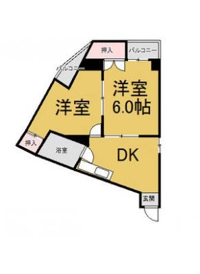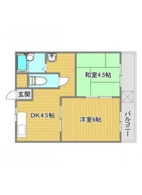 保証金1ヶ月 / 償 却10割間取り 2DK / 45.90入居日 即 可