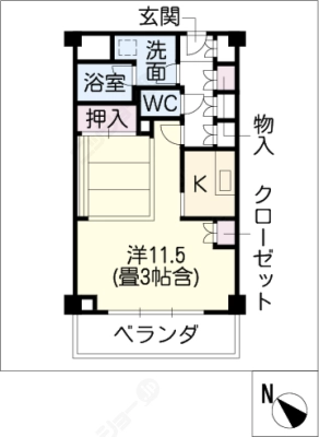 敷 金1ヶ月 / 礼 金1ヶ月間取り 1K / 33.49入居日 即 可