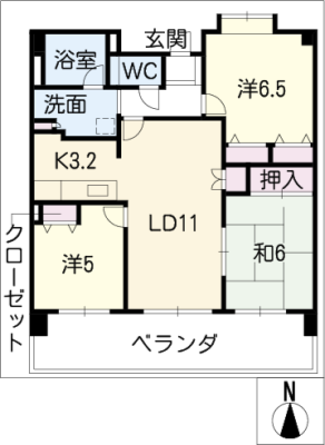 敷 金1.00ヶ月 / 償 却1.00ヶ月間取り 3LDK / 65.28入居日 即 可