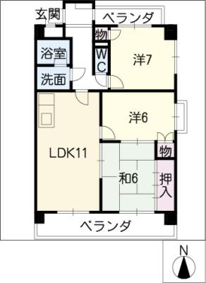 敷 金1.00ヶ月 / 償 却1.00ヶ月間取り 3LDK / 67.23入居日 即 可