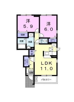 敷 金1ヶ月 / 礼 金1ヶ月間取り 2LDK / 60.67㎡入居日 即 可