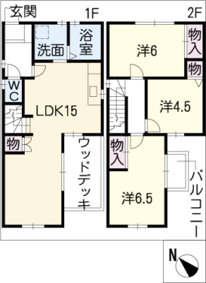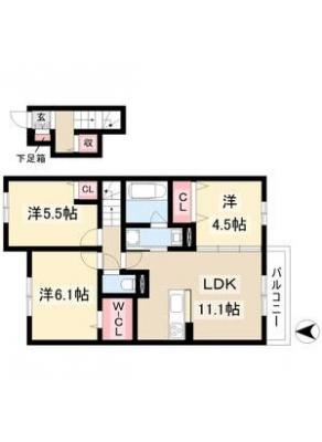 保証金1.00ヶ月 / 償 却1.00ヶ月間取り 3LDK / 65.05入居日 相 談