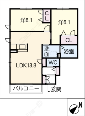 保証金----- / 礼 金1.00ヶ月間取り 2LDK / 61.14入居日 即 可