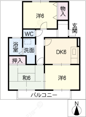 保証金69,000 / 償 却69,000間取り 3DK / 59.65㎡入居日 即 可