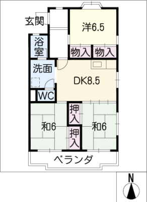 敷 金2ヶ月 / 敷 引2ヶ月間取り 3DK / 66.50入居日 2026年1月下旬
