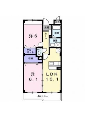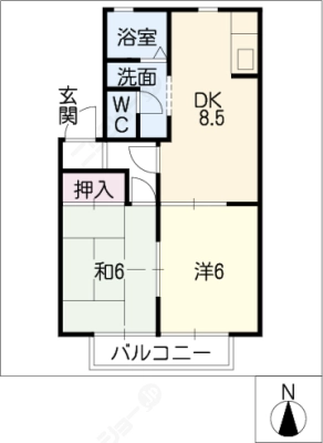 敷 金0.5ヶ月 / 礼 金1.5ヶ月間取り 2LDK / 60.65入居日 2026年4月下旬