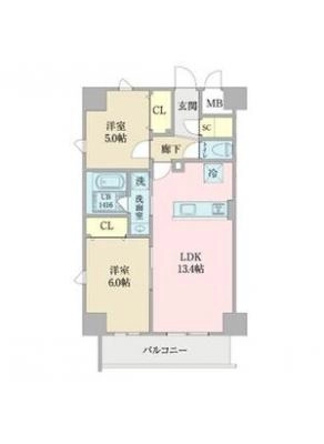 敷 金1ヶ月 / 礼 金1ヶ月間取り 2LDK / 59.39㎡入居日 2026年3月下旬