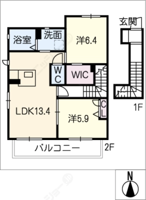 敷 金1ヶ月 / 礼 金1ヶ月間取り 2LDK / 60.67入居日 即 可