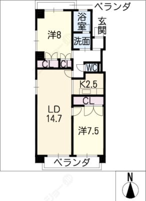 敷 金2.00ヶ月 / 礼 金-----間取り 2LDK / 56.77㎡入居日 2026年2月15日頃