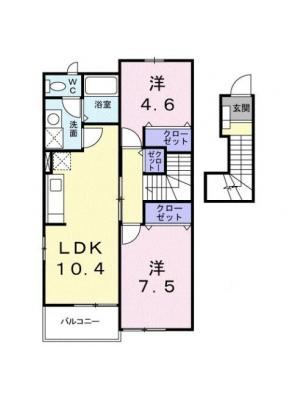 敷 金1万 / 一時金9万間取り 2LDK / 48.36入居日 即 可