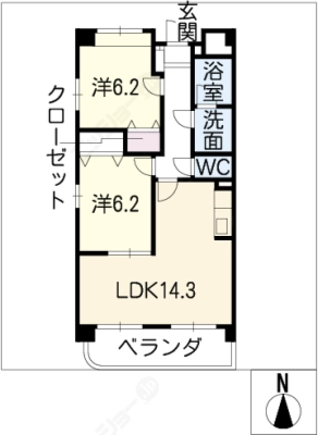 敷 金1.00ヶ月 / 礼 金1.00ヶ月間取り 2LDK / 61.74㎡入居日 即 可