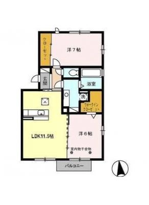 敷 金0.5ヶ月 / 一時金9.6万間取り 2LDK / 58.21㎡入居日 即 可