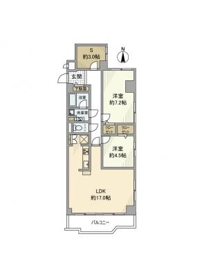 敷 金2.00ヶ月 / 礼 金1.00ヶ月間取り 2LDK / 57.17入居日 即 可
