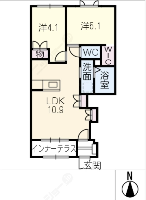 保証金1ヶ月 / 償 却10割間取り 2DK / 52.90入居日 相 談
