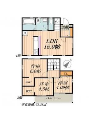 敷 金1.00ヶ月 / 礼 金1.00ヶ月間取り 3LDK / 73.28入居日 即 可
